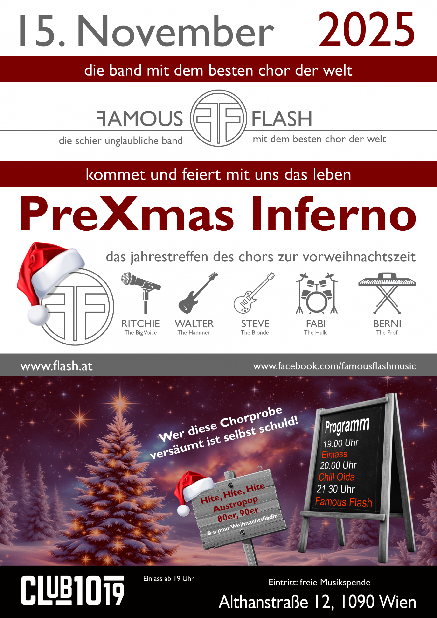 wer uns versäumt ist selbst schuld next tourdates SAVE THE DATE Samstag 15.11.2025 PreXmas Inferno erstmals 2 Bands Club 1019